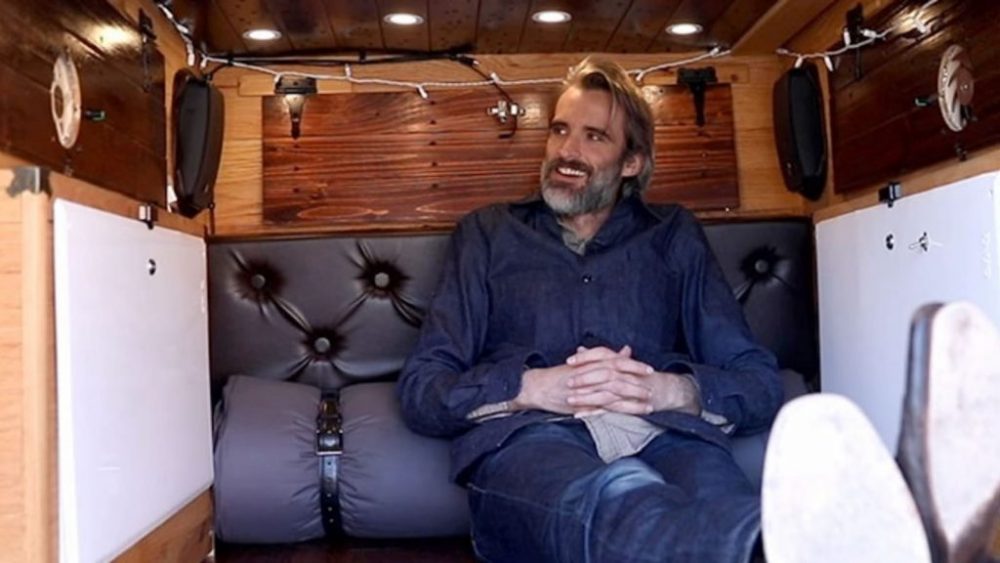 Dishongh splurged around $6K furnishing the camper, which looks like his condo’s miniature version, from the wooden panels to the retractable cover he uses for watching movies. Lining the perimeter are sparkling Christmas lights and tucked away in the back is a rolled-up camp mattress. A battery was also installed into the bed of the truck for powering fans, lights, and some electronics. He devised a ventilation system, lining it with hardwood flooring, too!
